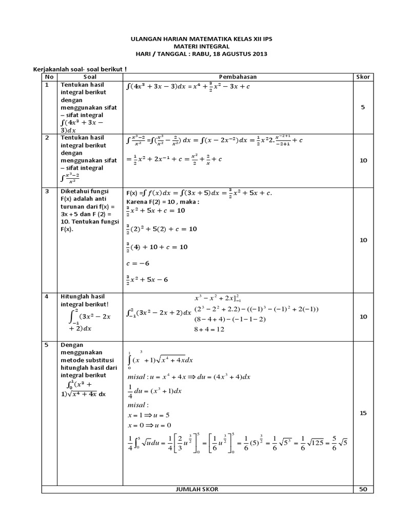 Di kelas xi, kalian telah mempelajari konsep turunan. Tes buat latihan ulangan statistik dan peluang kelas ix 15 questions | 140 attempts. Pengertian integral sebagai anti diferensial dalam pelajaran matematika telah dikenal arti dari operasi invers. Pemahaman tentang konsep turunan ini dapat kalian gunakan untuk memahami konsep integ. Download as pdf, txt or read online from scribd. Dalam kurikulum 2013 revisi materi ini ada di kelas 12 sedangkan pada kurikulum sebelumnya dipelajari di kelas 11. Assalamualaikum.wr.wb selamat datang diblog saya, selamat mempelajari materi matematika tentang integral integral tak tentu p. Materi ajar matematika xii ips bab integral. Sistem pertidaksamaan dua variabel b. Dapat menampung lebih dari 12 mobil dan bus. Antiremed kelas 12 matematika doc. .kelas 12 ipa semester gasal 1. Semoga selalu sehat dan tetap semangat belajar matematika, ya!