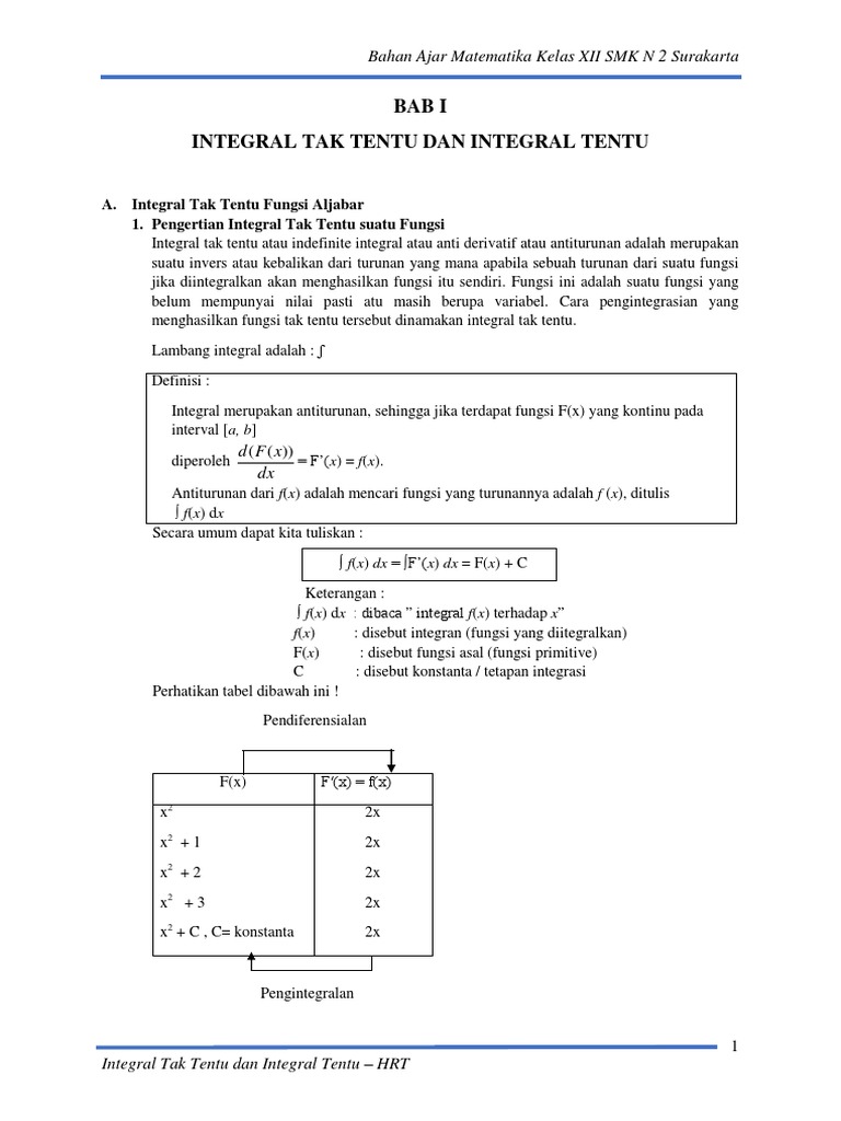 Pengertian integral sebagai anti diferensial dalam pelajaran matematika telah dikenal arti dari operasi invers. Agar dapat paham dengan integral sampai integral berkelanjutan, anda pertama harus paham integral dasarnya dulu. Materi matematika kelas 11 (xi). 0 ratings0% found this document useful (0 votes). Sistem pertidaksamaan dua variabel b.